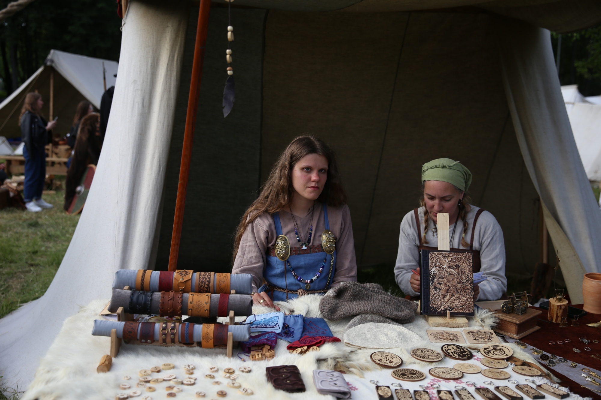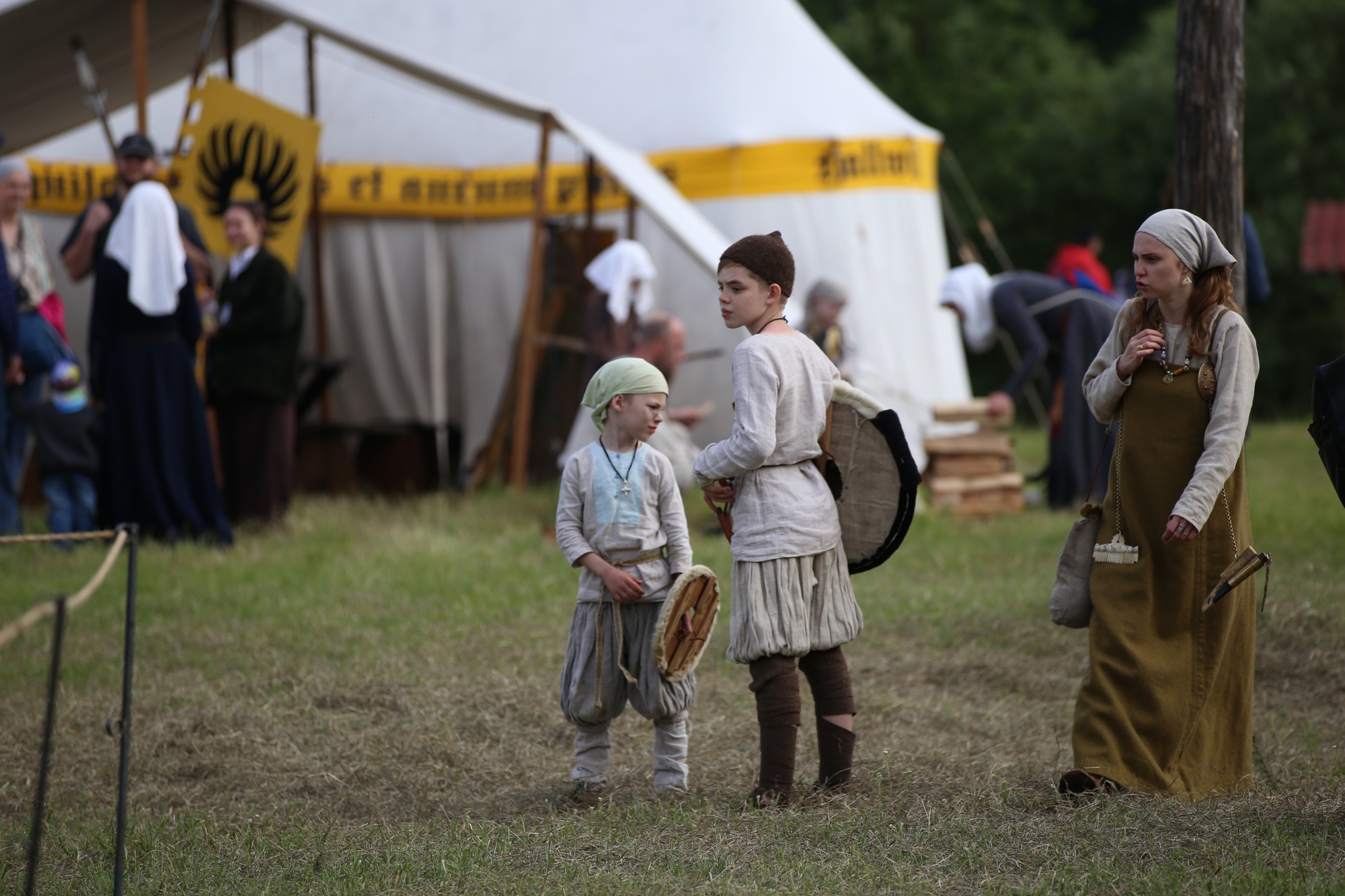 Атмосфера была поистине уникальной: костры ярко пылали, а седовласый дым «обнимал» весь полевой лагерь, шатры «шептали» древние сказания, оружие звенело в руках воинов. Даже мальчишки-малыши не упустили возможности продемонстрировать свои навыки боя, вооружившись мечами и щитами из дерева.