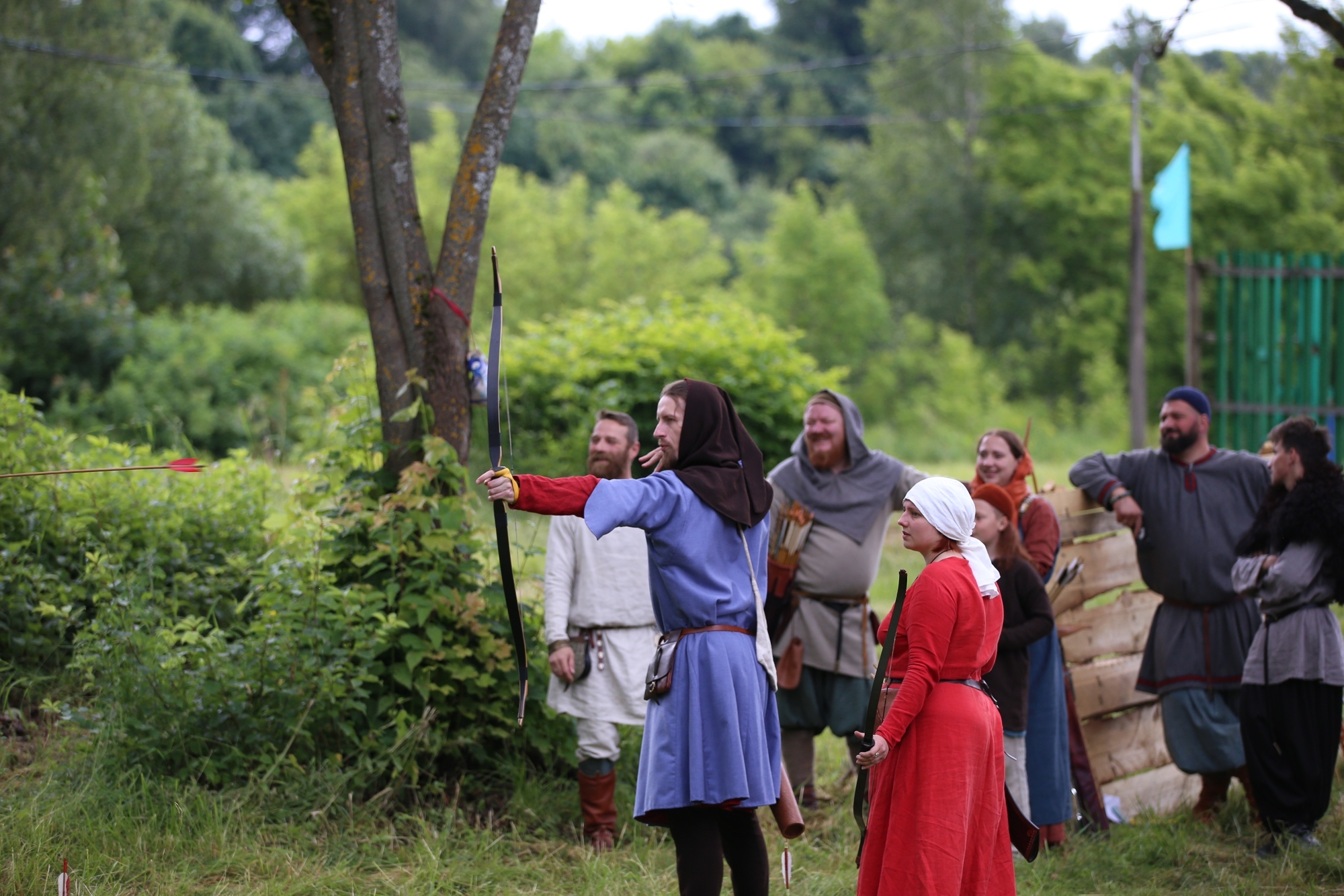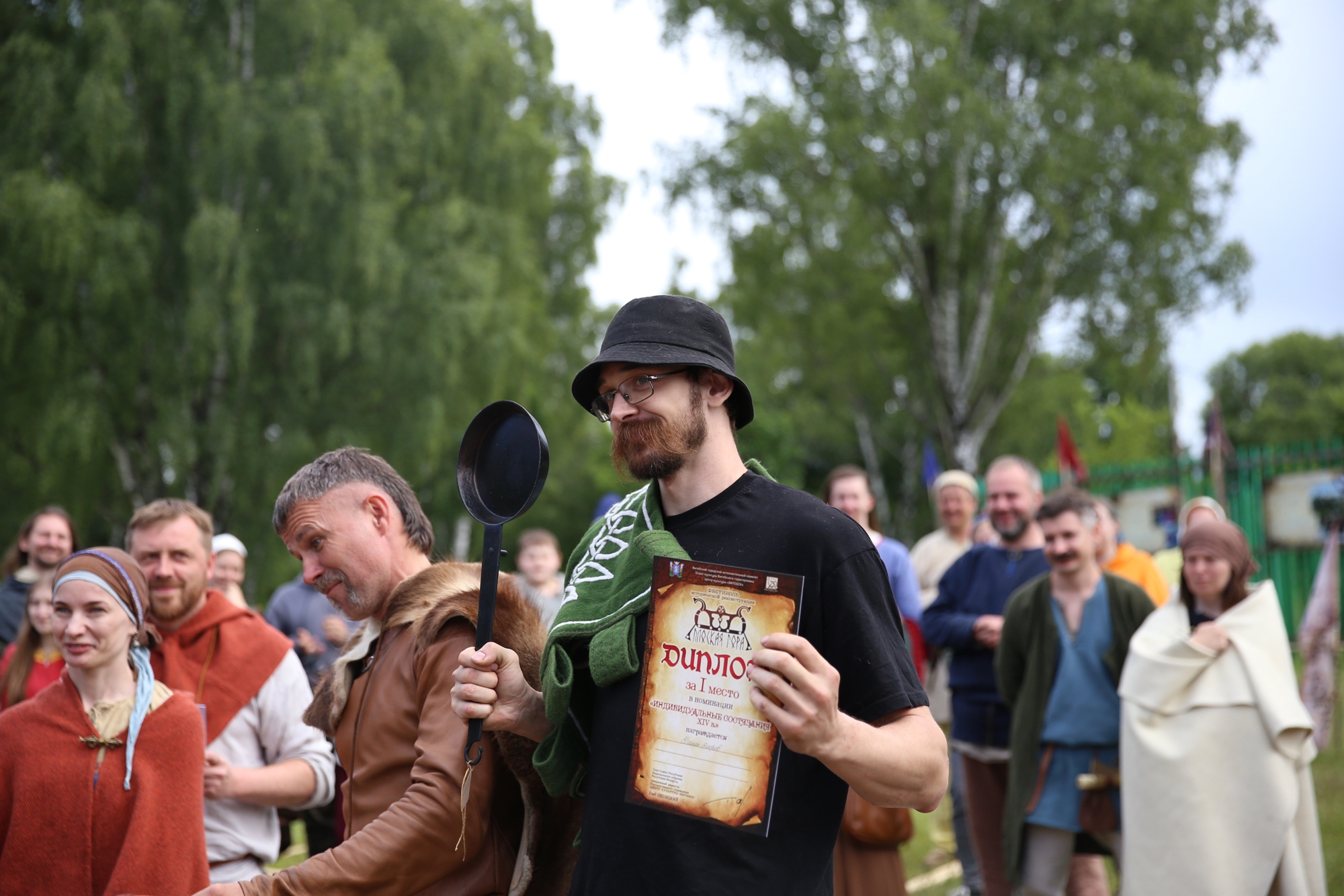 Весь день был наполнен мастер-классами и боевыми сценами: командные сражения эпох IX и XIV веков, общий бой, ладейная битва, захват сундука, опасная "волчарня" с препятствиями и бугурты — всё это погружало участников в атмосферу средневековых сражений и героических подвигов.