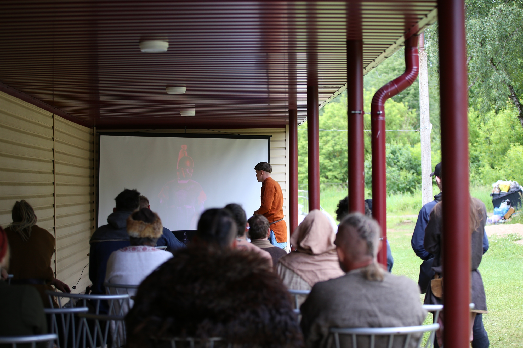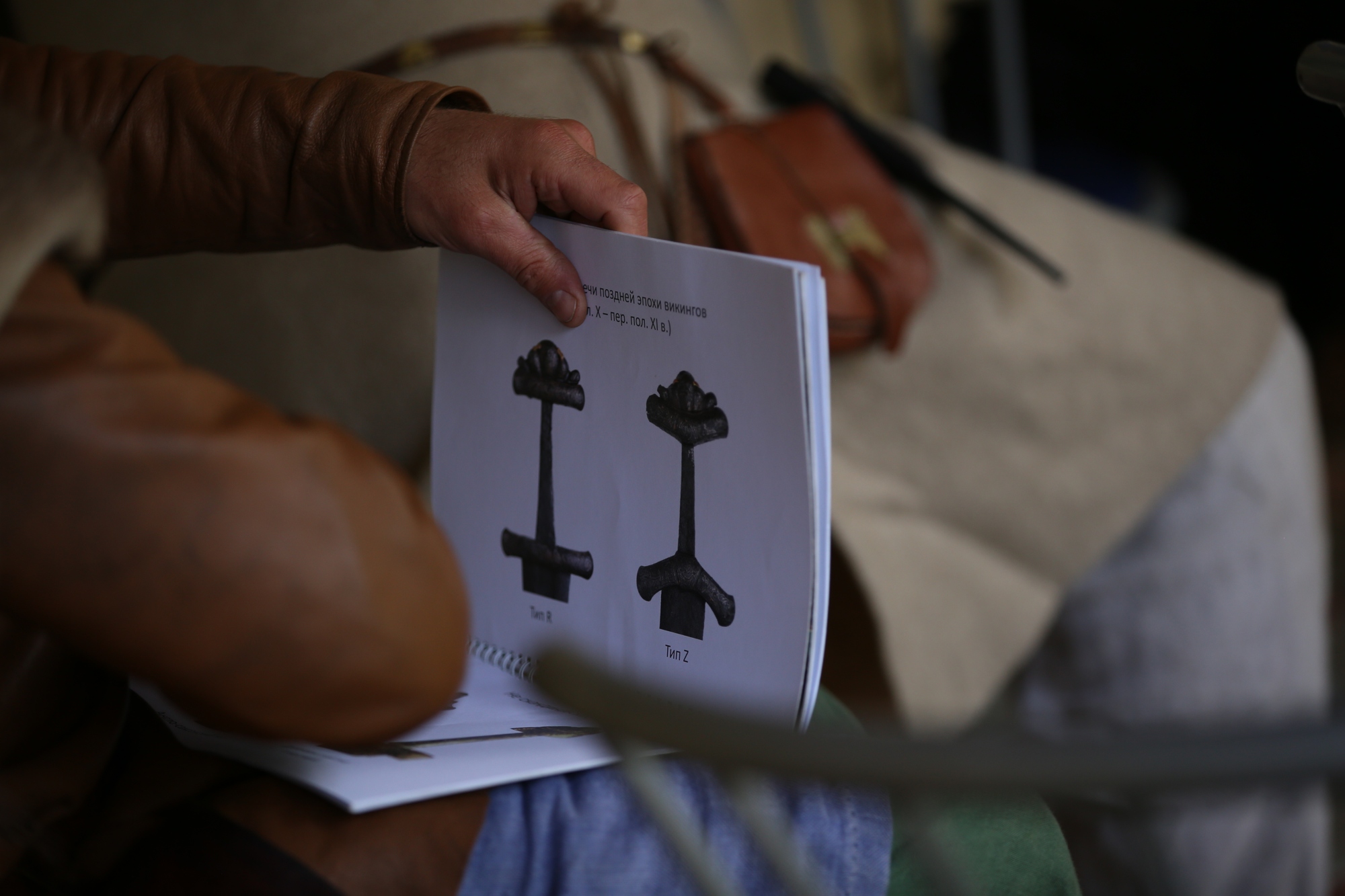 Открылась площадка, где все желающие могли послушать лекцию «МЕЧИ ЭПОХИ ВИКИНГОВ» Дмитрия ХРАМЦОВА, кузнеца народного клуба исторической реконструкции «ВАРГЕНТОРН», а также Сергея СИМУНИНА из Брянска — «КРАТКАЯ ЭВОЛЮЦИЯ КОЛЬЧУЖНОГО ДОСПЕХА ОТ АНТИЧНОСТИ К РАННЕМУ СРЕДНЕВЕКОВЬЮ. ПРАКТИКА ИЗГОТОВЛЕНИЯ, ПРИМЕНЕНИЯ И УХОДА».
