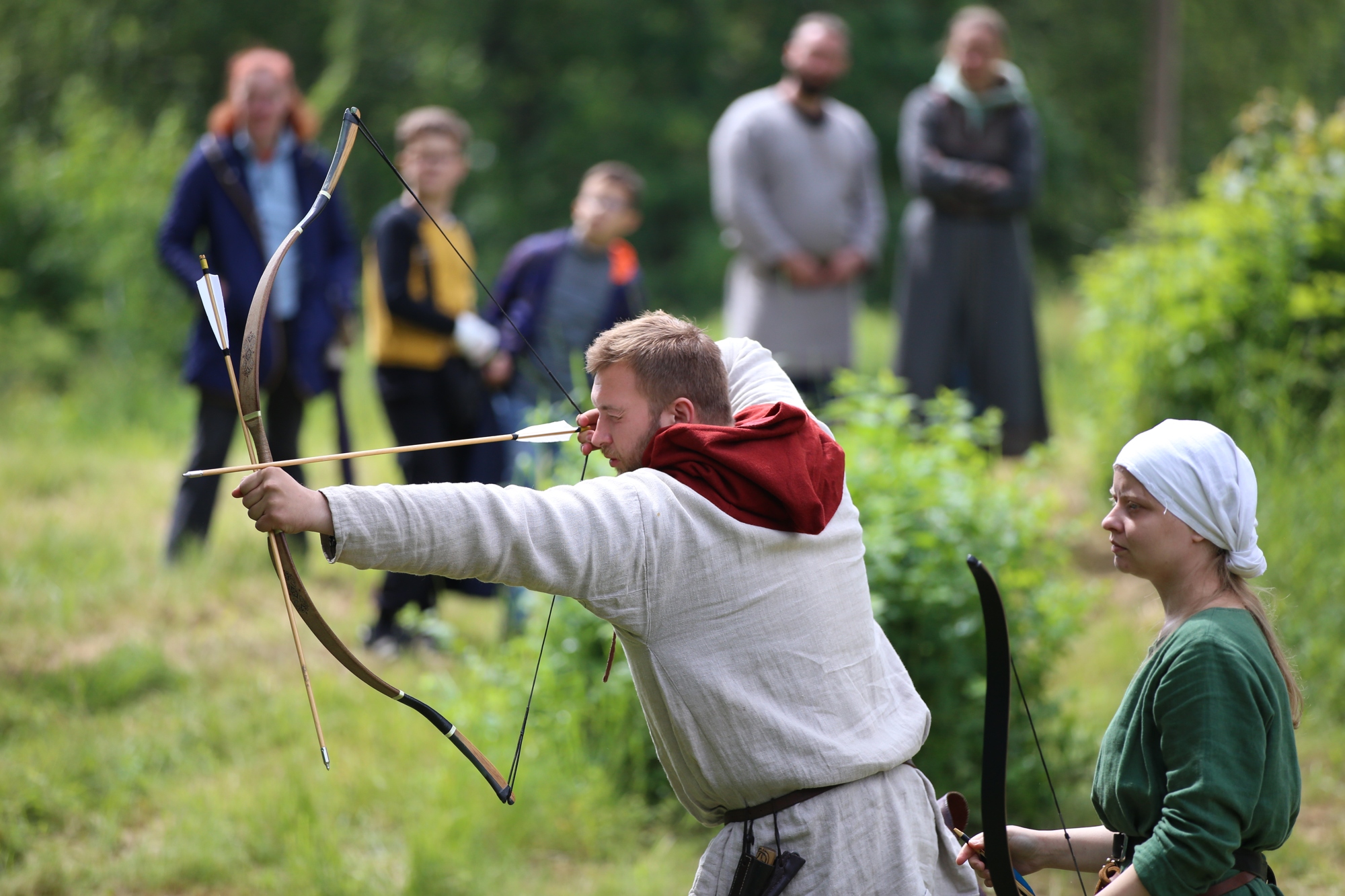 На второй день дух эпохи достиг своего апогея! И даже витебский дождь не остановил празднество. Прошёл копейный турнир XIV века — зрелищное состязание воинов с древним оружием. Алесь ЧУМАКОВ провёл мастер-класс по игре на гуслях, открывая тайны старинных мелодий. Не обошлось без лучного турнира — битвы стрелков из лука напоминали о славных охотниках и воителях минувших времён.